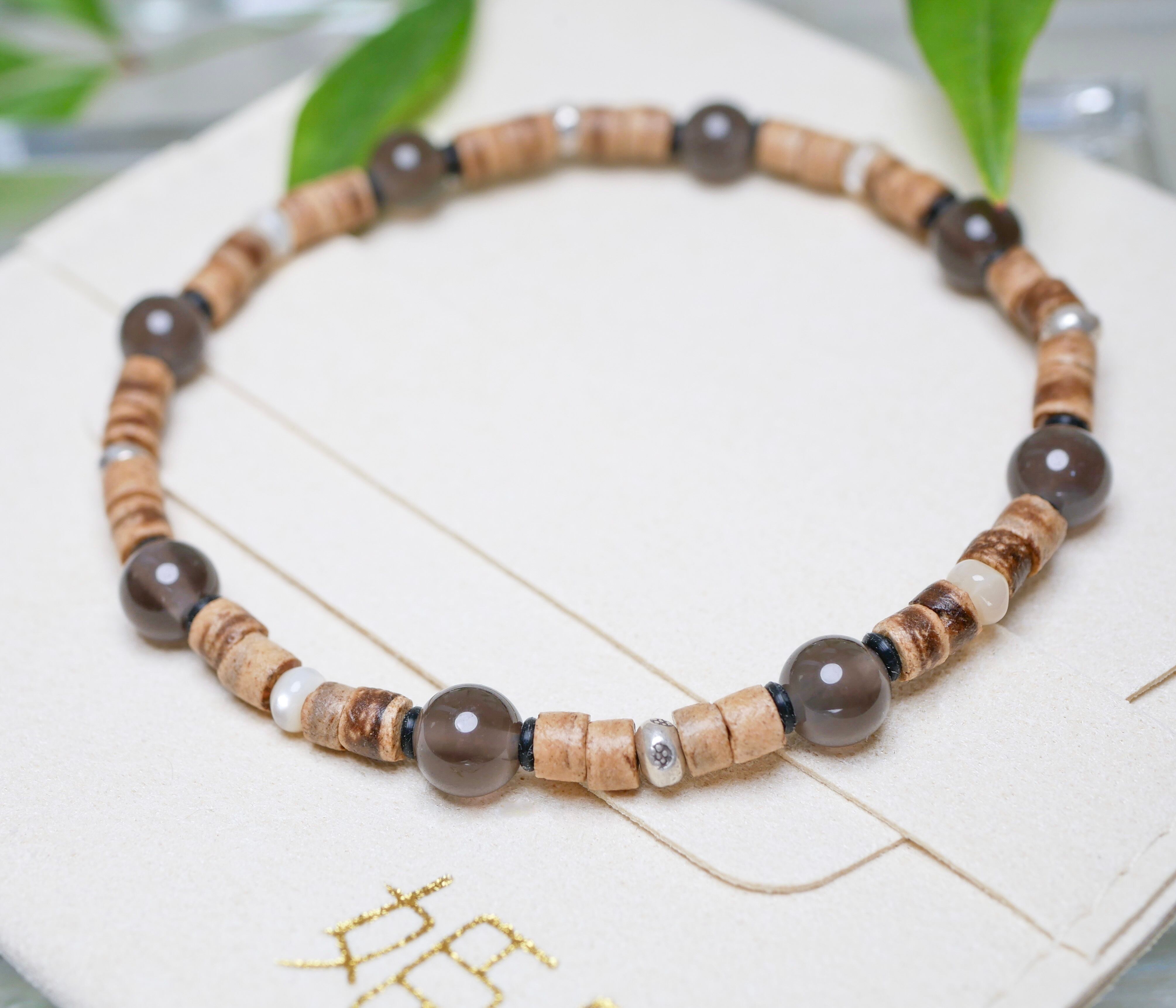おまもり用の縄文ブレス。 縄文時代の学びがヒントとなり、創造されたシリーズ。天然素材がメインのユニセックスブレスです。