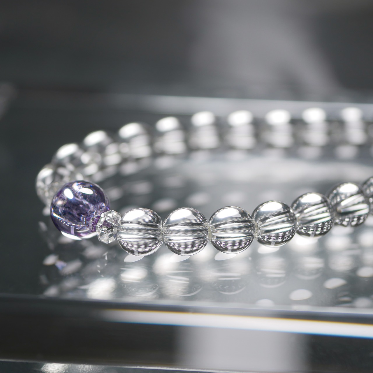 デットストックの国産ラボクォーツを磨き上げた珠です。
