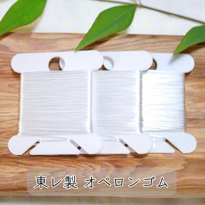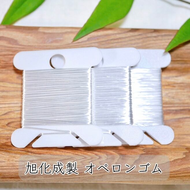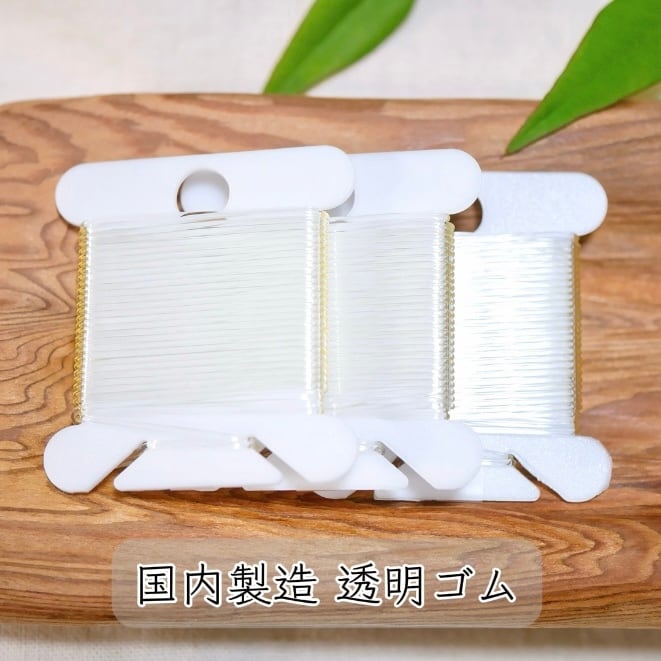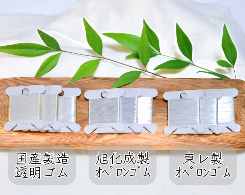 姫石~きせき~・気のせいで採用しているゴム紐。すべて国産です。海外製のゴム紐に比べ強度があり、耐久性に優れます。