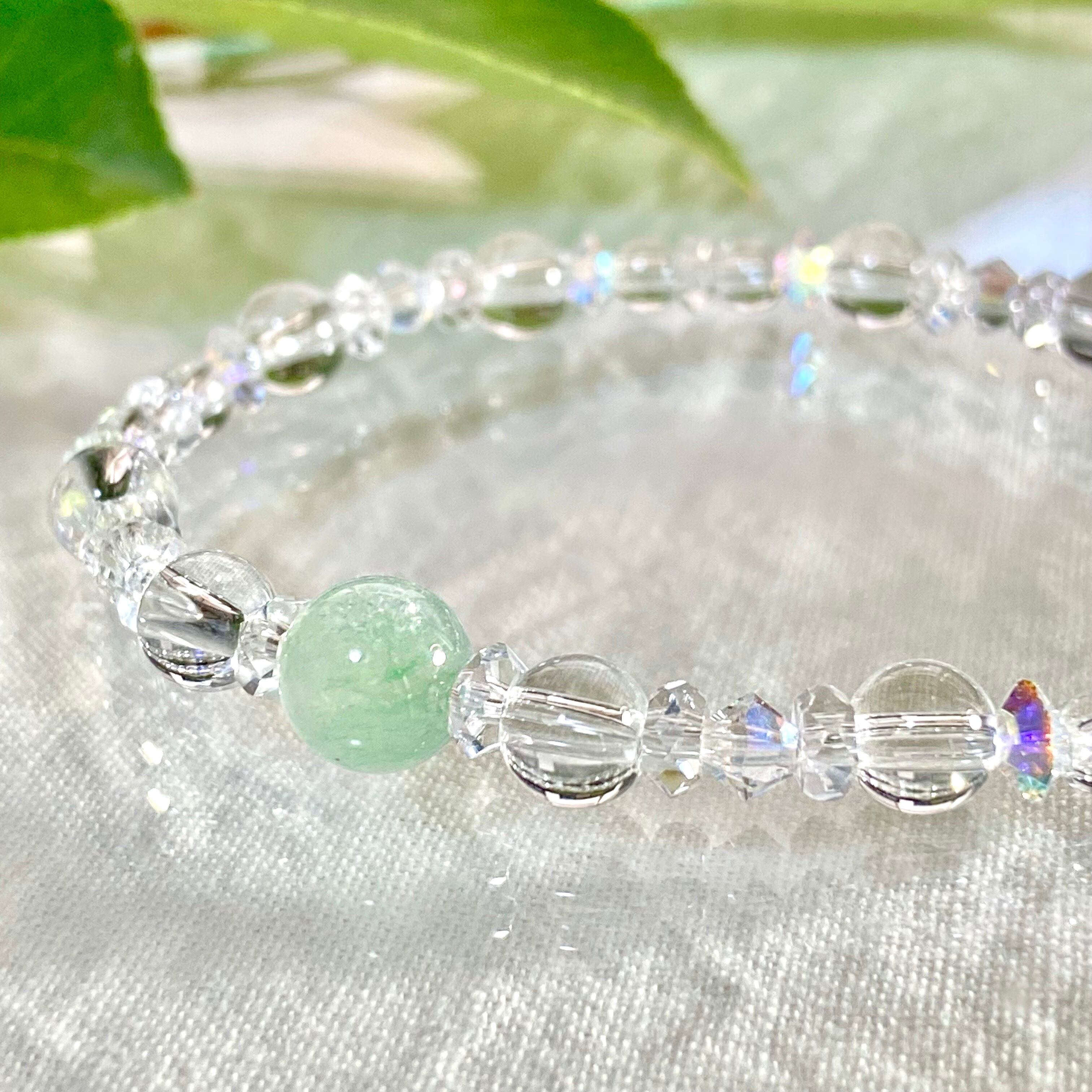 格別の透明感 レトロな国産シンセティッククォーツ 和水【なごみ】+瑞々しい ムーンライトアベンチュリンクォーツ ブレス。お手元でご体感いただきたいので、お試し価格です。