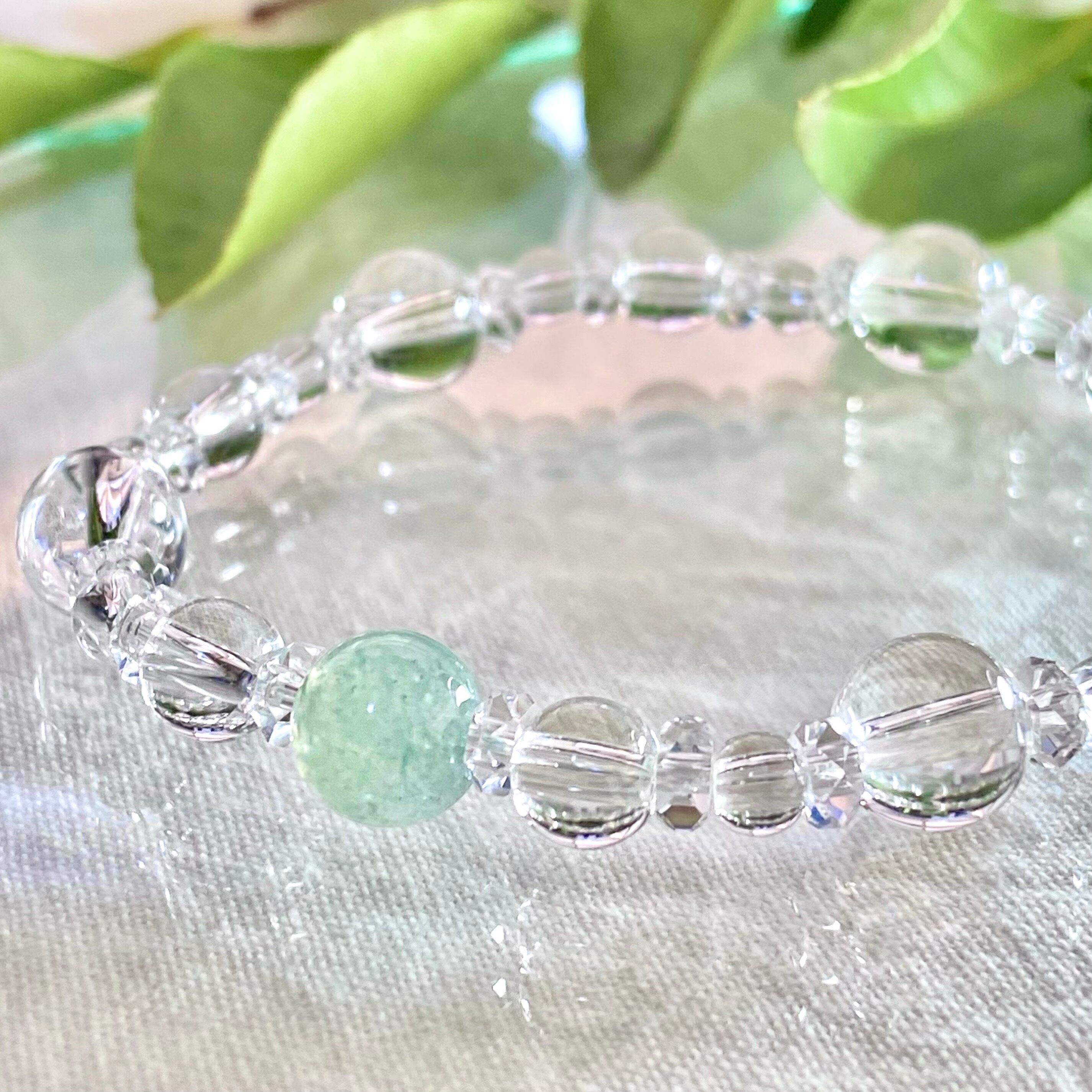 格別の透明感 レトロな国産シンセティッククォーツ 和水【なごみ】+瑞々しい ムーンライトアベンチュリンクォーツ ブレス。お手元でご体感いただきたいので、お試し価格です。