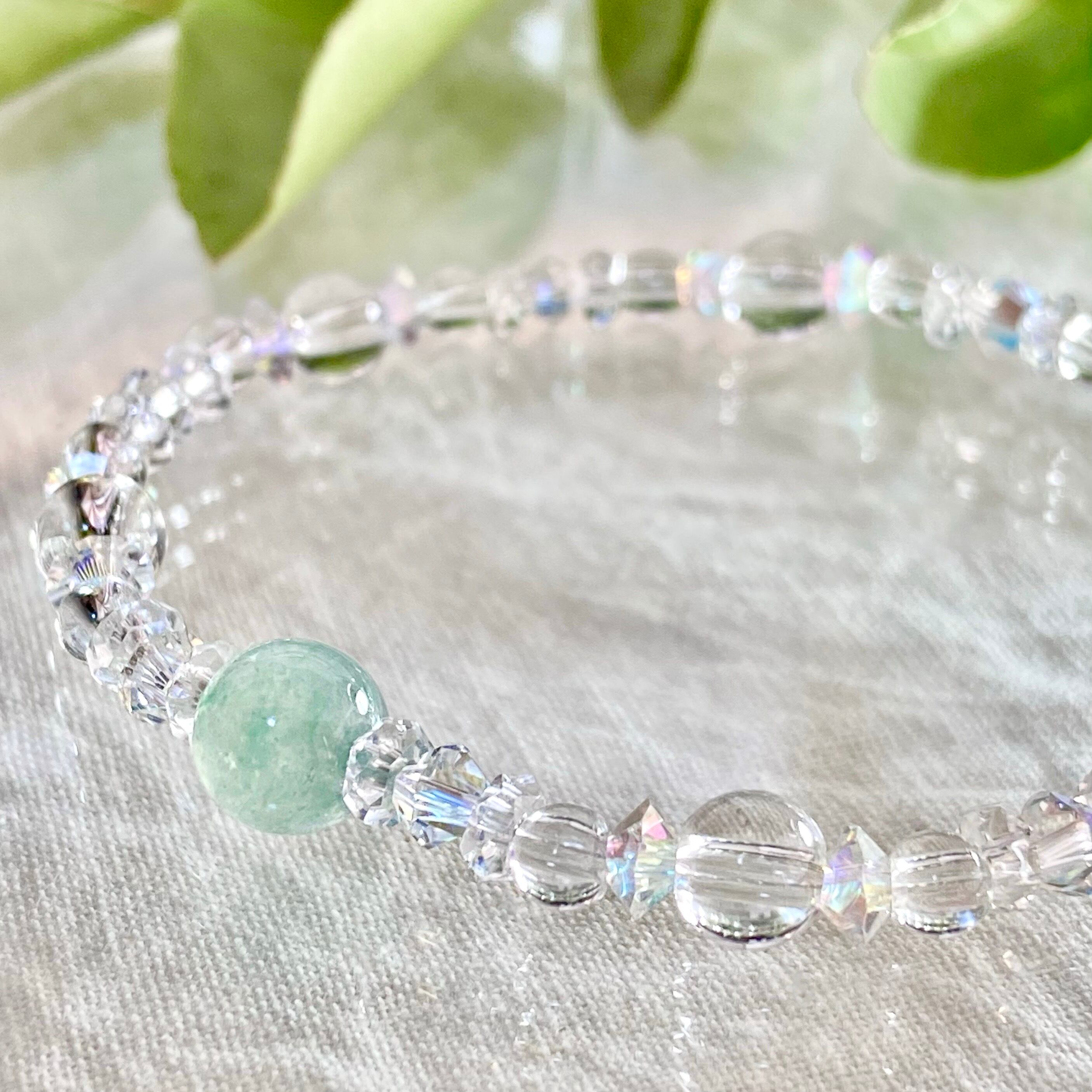 格別の透明感 レトロな国産シンセティッククォーツ 和水【なごみ】+瑞々しい ムーンライトアベンチュリンクォーツ ブレス。お手元でご体感いただきたいので、お試し価格です。