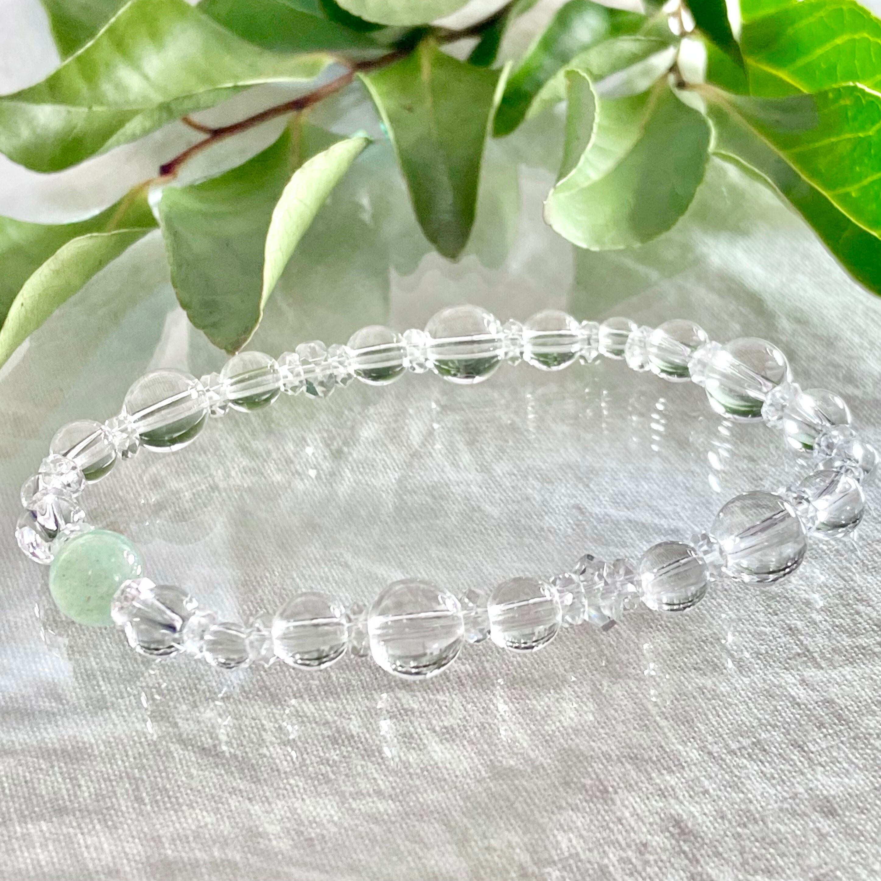 格別の透明感 レトロな国産シンセティッククォーツ 和水【なごみ】+瑞々しい ムーンライトアベンチュリンクォーツ ブレス。お手元でご体感いただきたいので、お試し価格です。