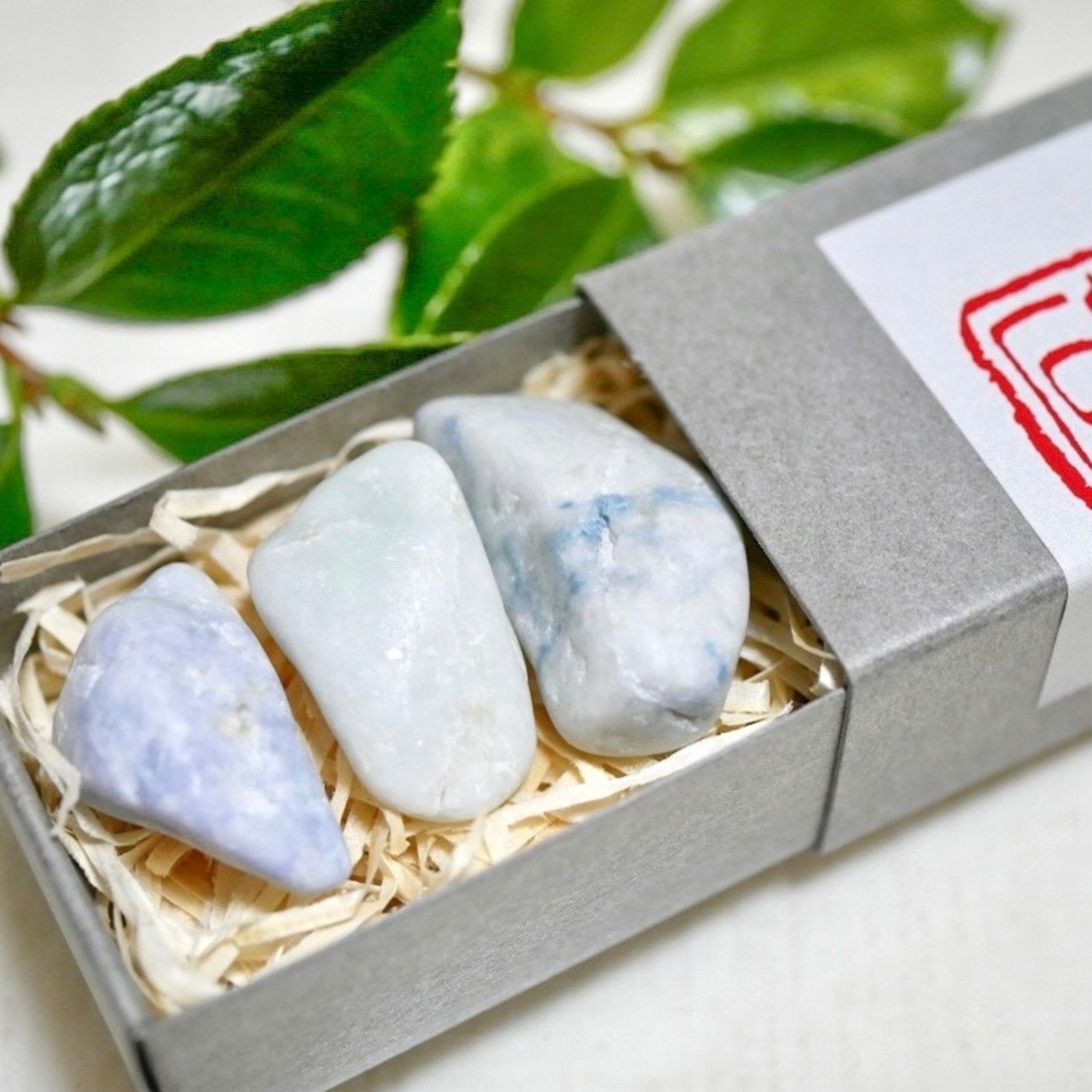 こちらは、ラベンダー系(ヨシオ)・白系(グリーン入り)・青サシ系の3個セット。